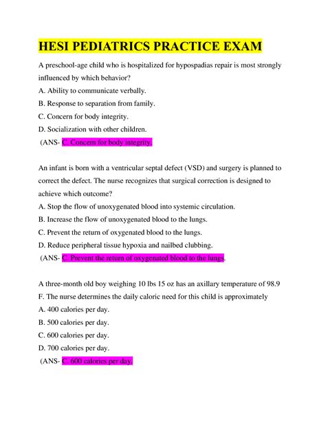 Read Hesi Test Questions On Pediatric 149797 PDF Paperback BookBoon